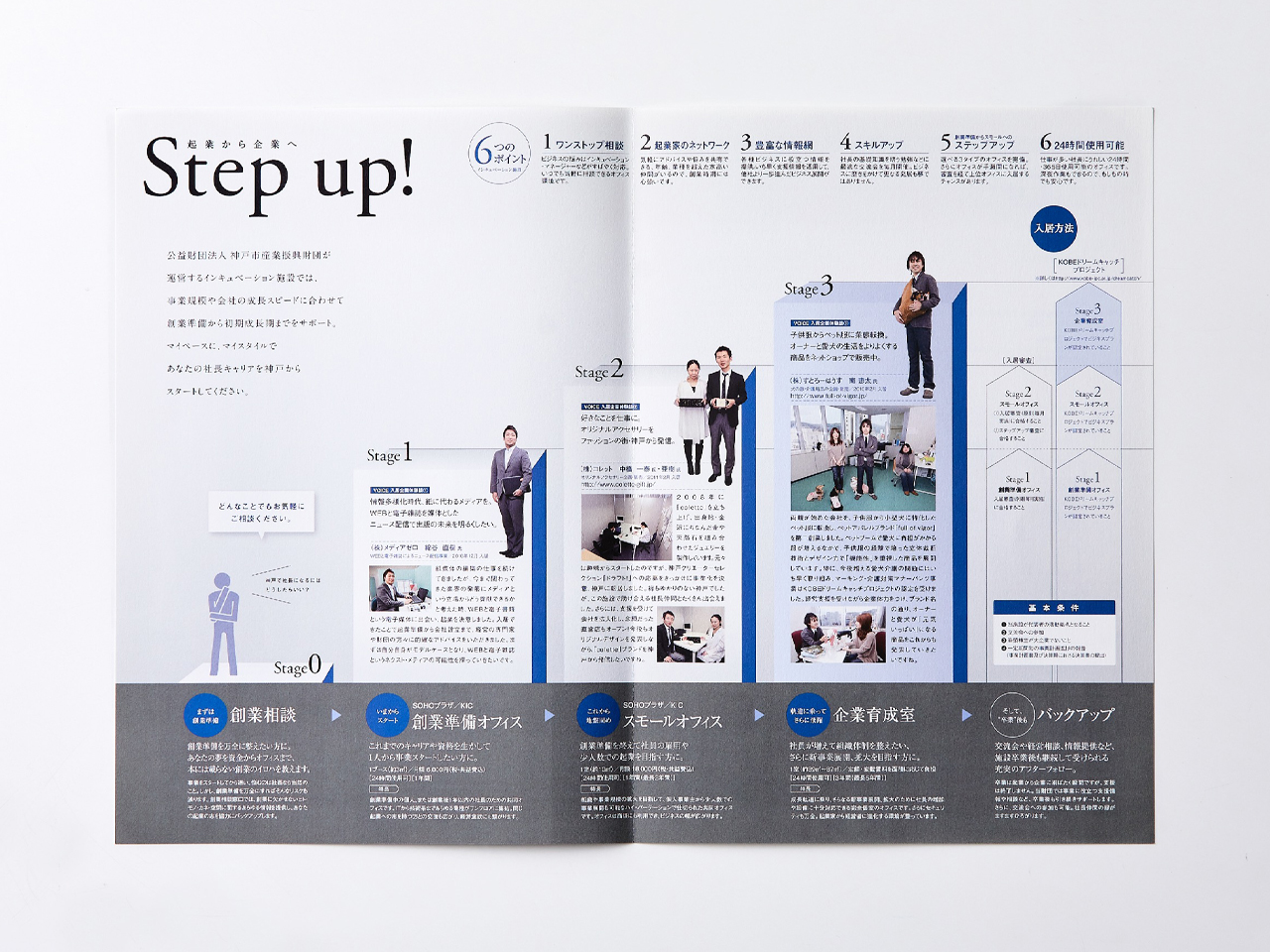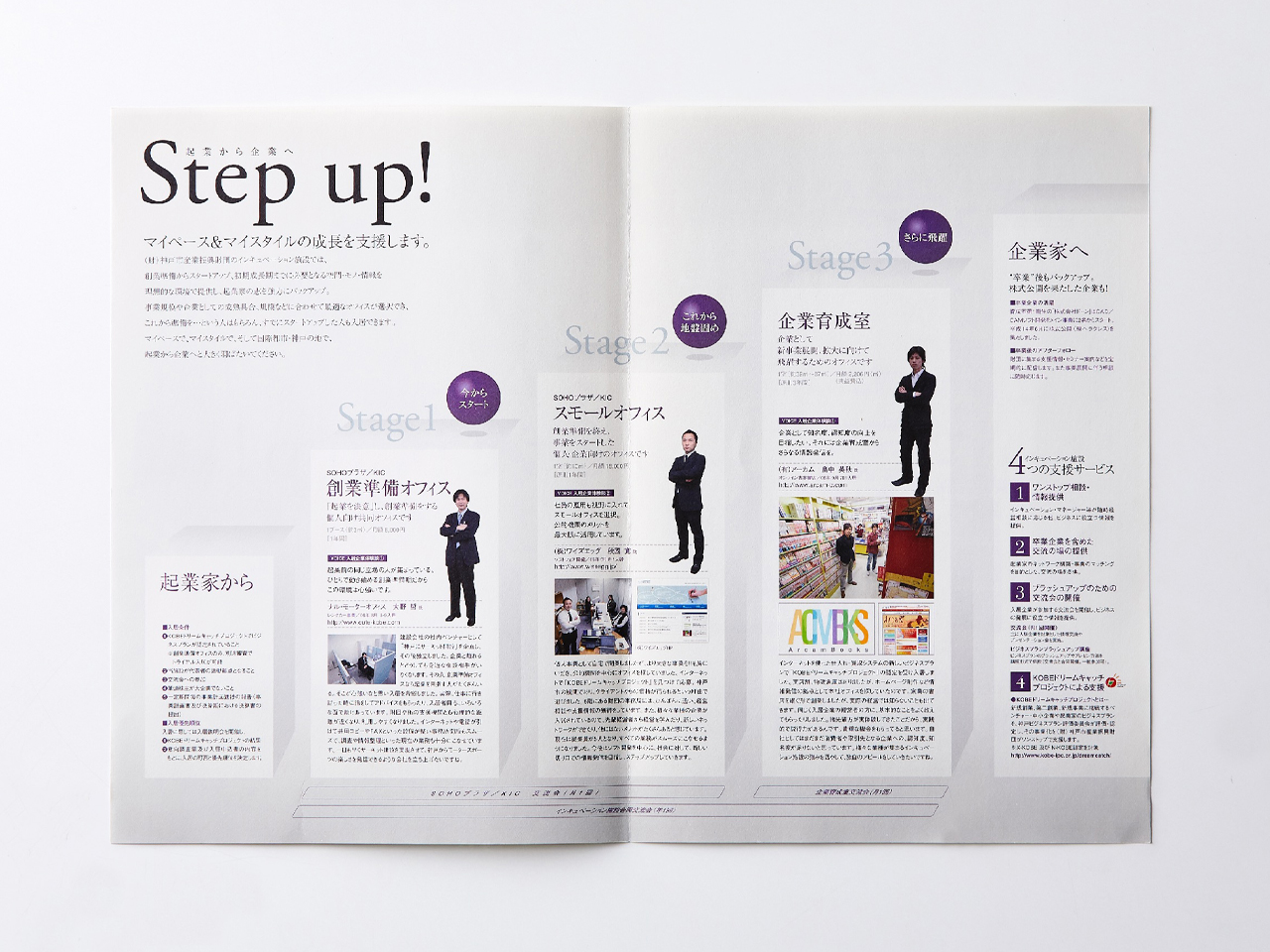 創業の相談から企業育成までのステップを取材しパンフレットに纏めました。