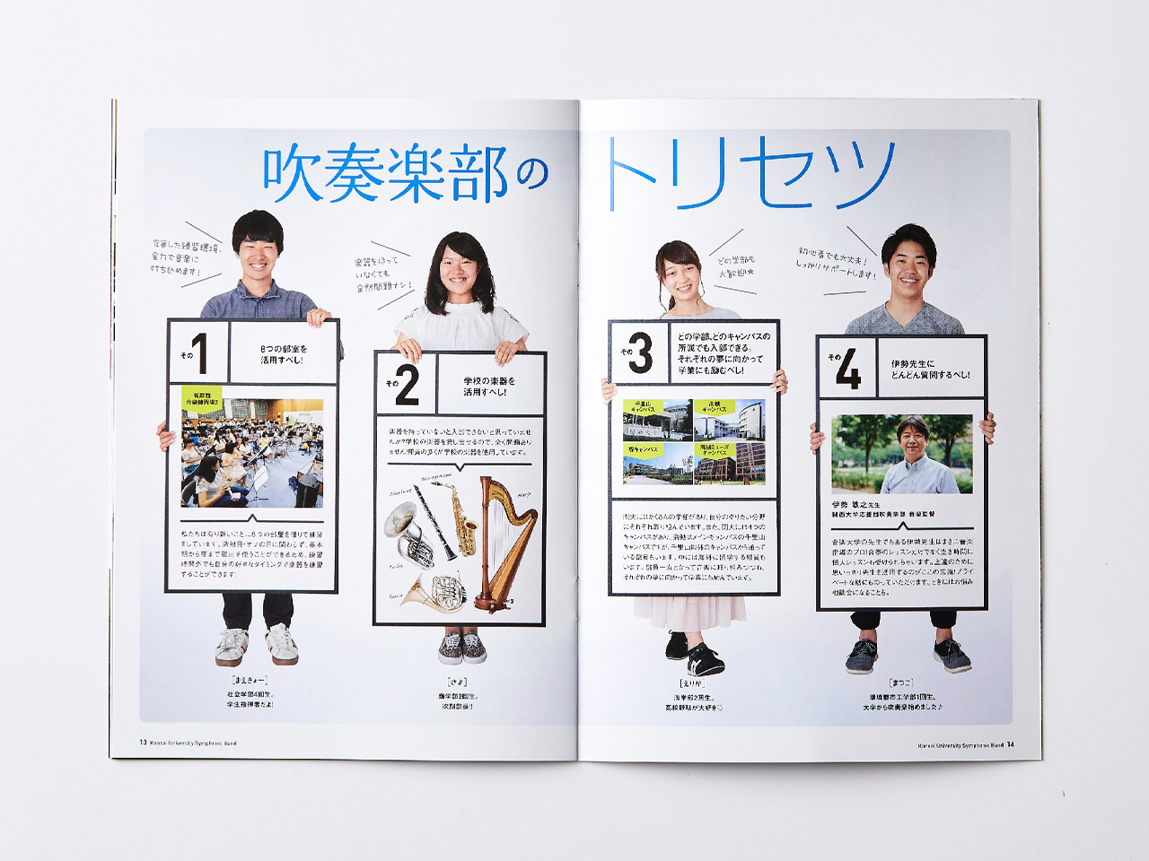 大学の応援団吹奏楽部の活動のために作成したパンフレット。